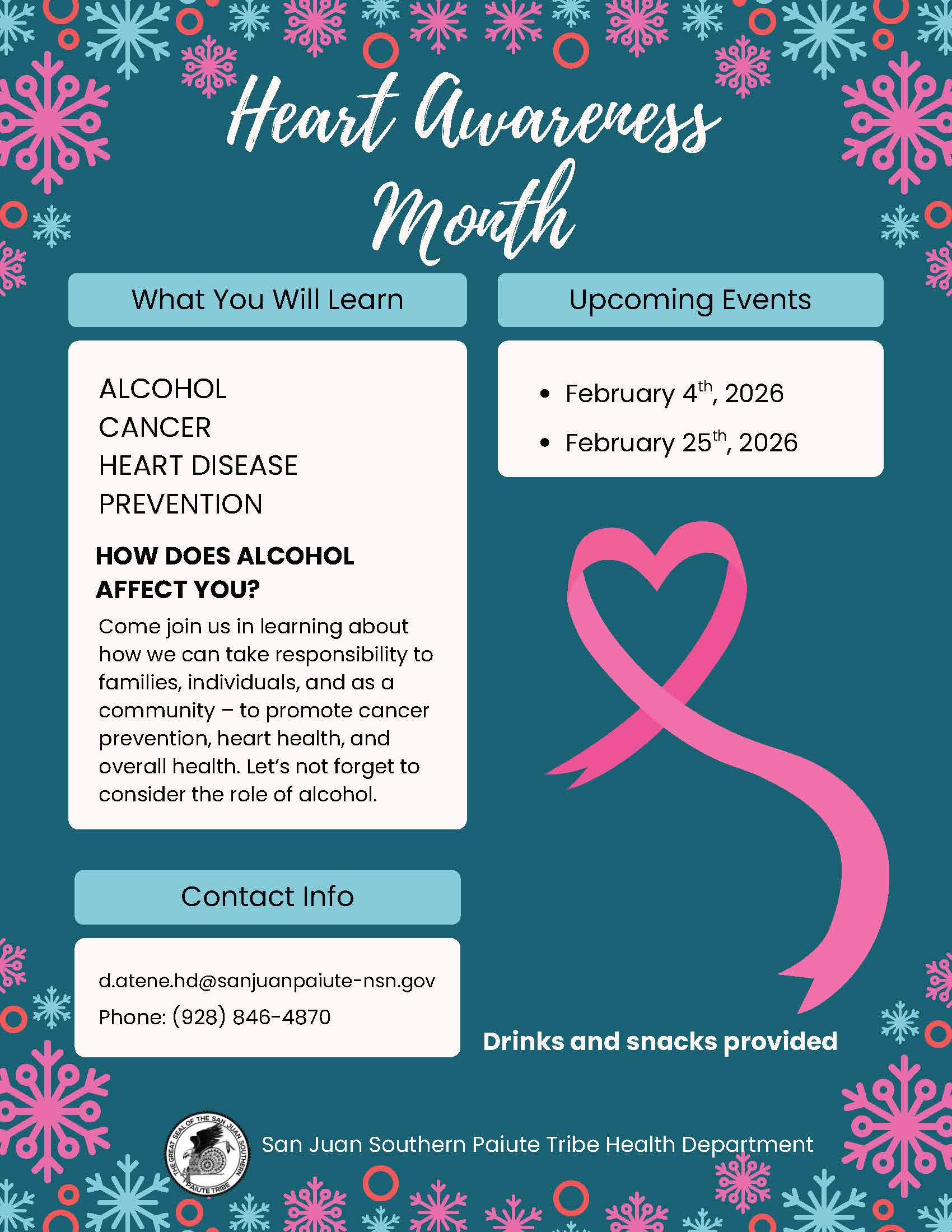 February is Heart Awareness Month, and the San Juan Southern Paiute Tribe Health Department is hosting two community learning sessions to help us think clearly and take action on long-term health.